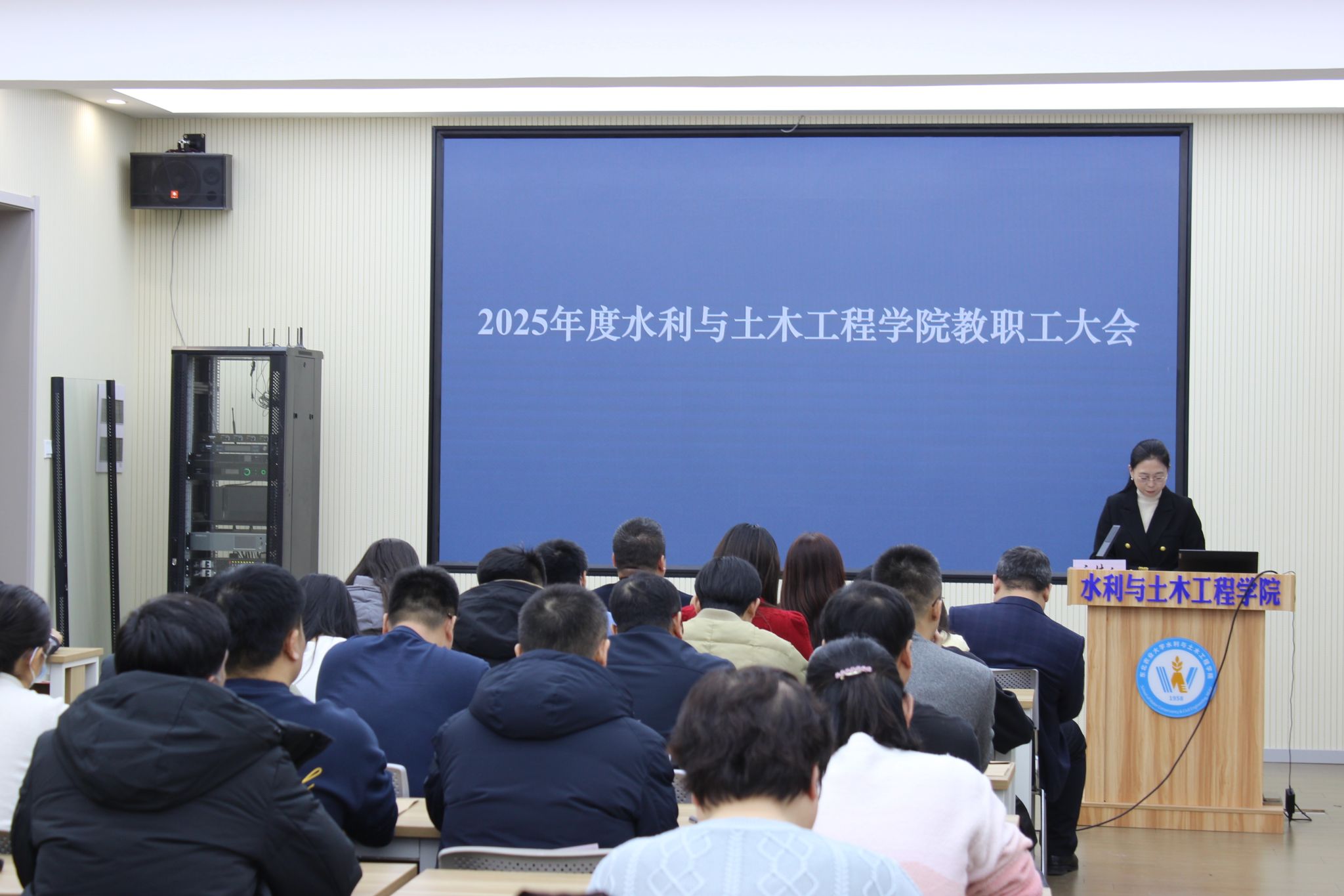 1月7日下午,水利与土木工程学院2025年度教职工大会在水利楼308会议室召开,学院领导班子、全体教职工参加会议。会议由学院党委副书记、工会主席王国军主持。