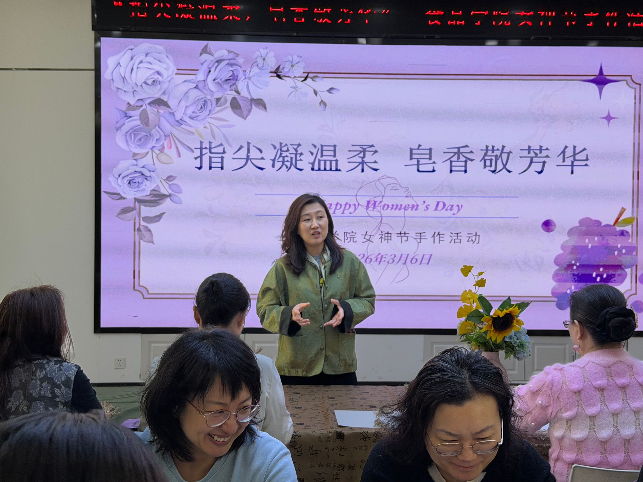 为庆祝“三八”国际妇女节,3月6日下午,食品学院在食品楼315报告厅举办了一场别具匠心的“指尖凝温柔,皂香敬芳华”主题手工皂制作活动。学院党委书记施喜军,院党委副书记、工会主席钱芳来到现场,与全院女教工共度温馨时光,并向大家致以节日的诚挚祝福。